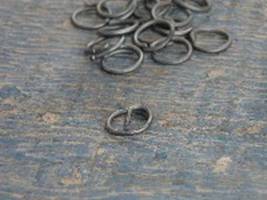 My experiment, then, was to see if I could produce a riveted theta ring, similar to those found in extant examples of medieval maille, using similar tools and techniques to those used in the manufacture of medieval maille (at least, to the degree that we could do so safely). I’ve documented each step in the process of both the theta ring manufacture, as well as the subsequent steps involved in incorporating the resultant ring into a riveted maille project.